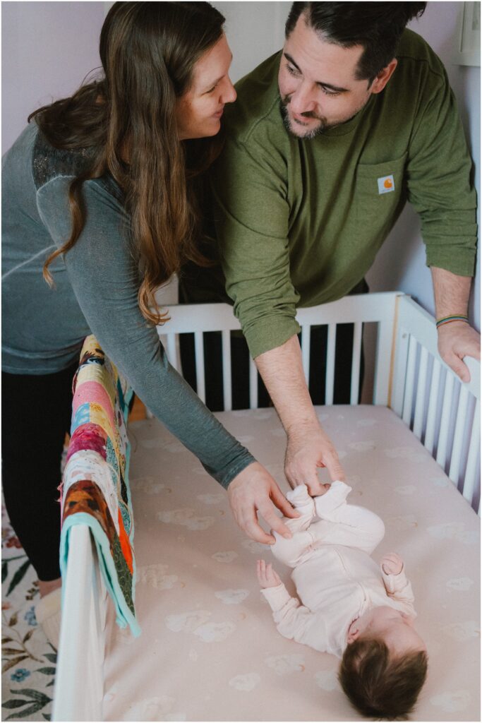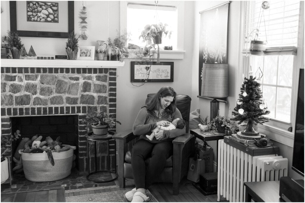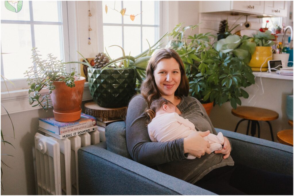 We met on a sunny January day for newborn photos in their little Richmond, VA home. It was cozy and full of character. Antique treasures lined the walls and lively plants filled the space with green, bringing life and warmth to every nook. The sunlight streamed through the windows, creating rainbows across the floor from sun-catchers in the windows.