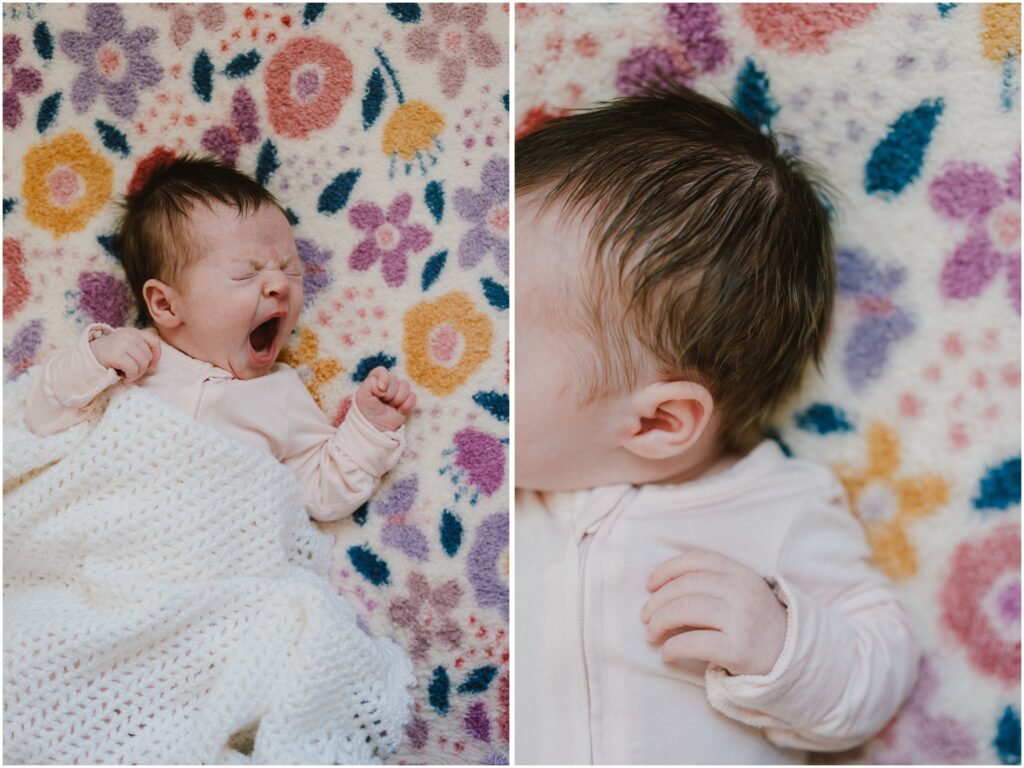 Newborn sessions are not just about capturing features – though Hazel’s full of hair and round cheeks could melt you.